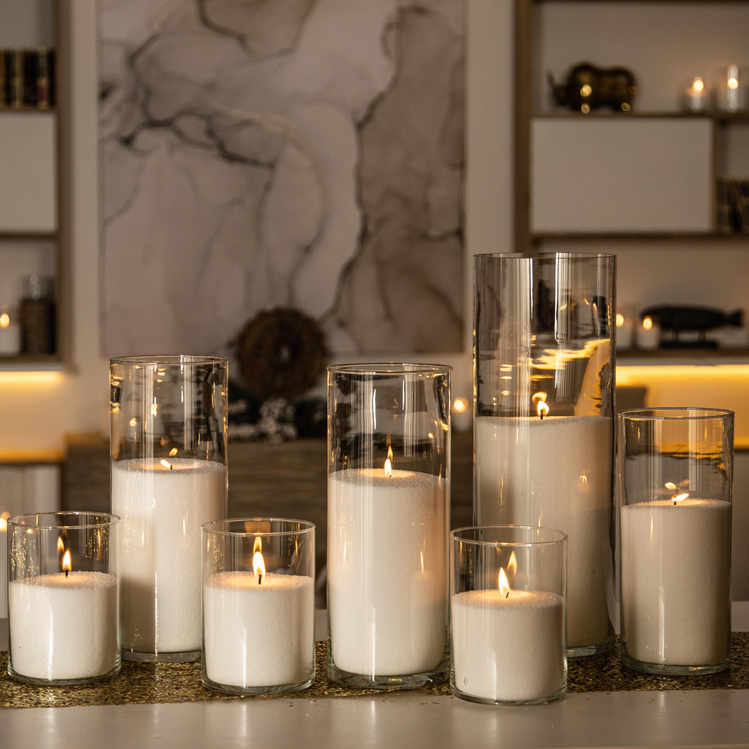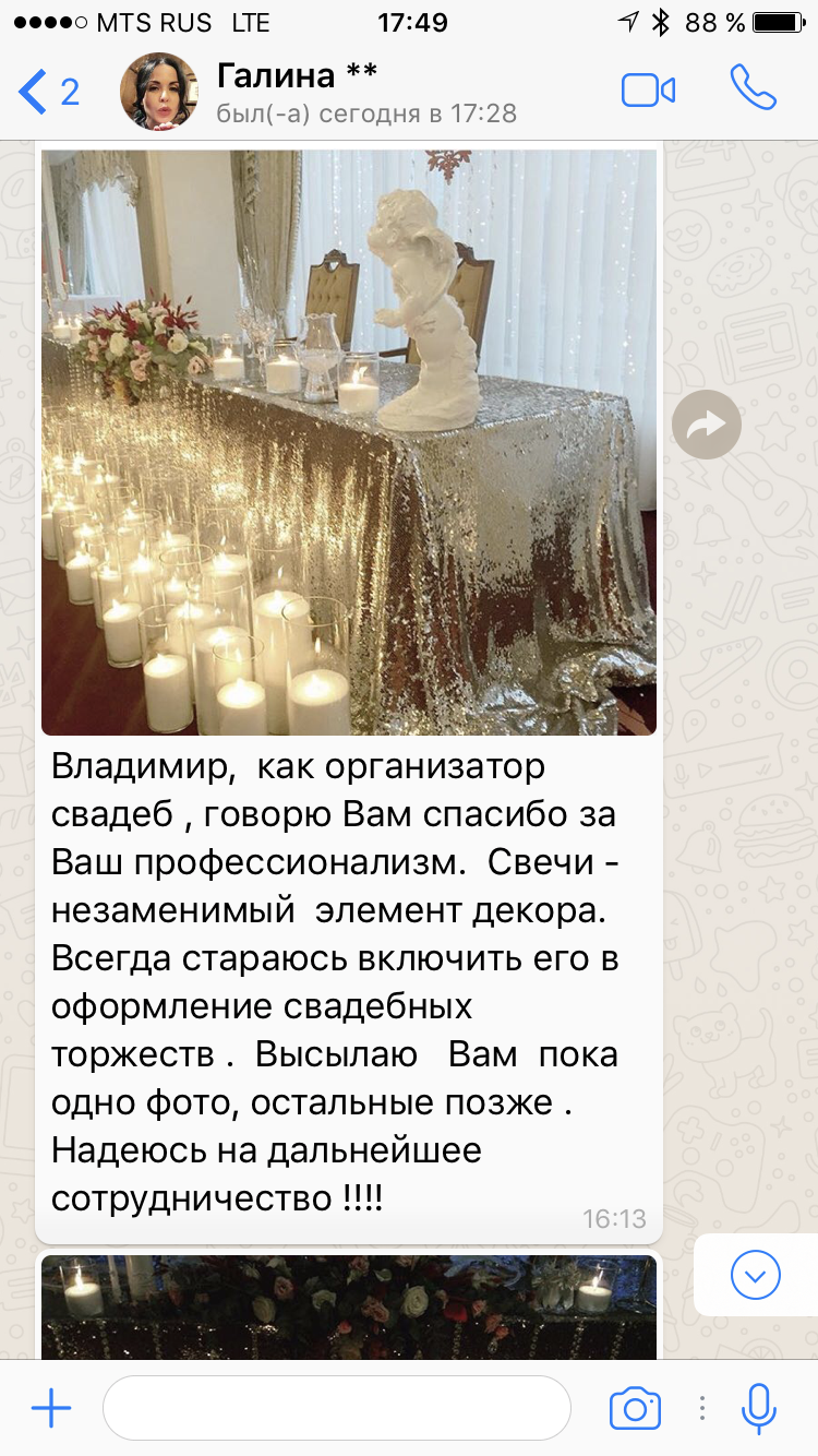16 композиций по 6 свечей от 15 до 80 см в высоту. С помощью наших флористов клиент сократил затраты на флористику и декор на 25 тыс руб, по сравнению с аналогичными предложениями других компаний.